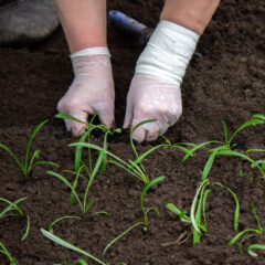 Manual planting of a grass surface.